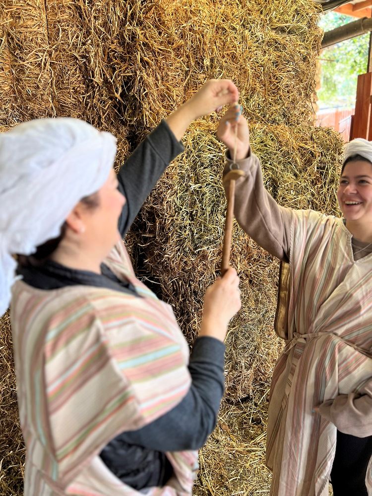 Nuestra actividad de Hilado de Lana Bíblico le invita a probar herramientas tradicionales, sentir la textura de la lana cruda y conectar con la artesanía silenciosa que vestía a generaciones en los tiempos bíblicos.