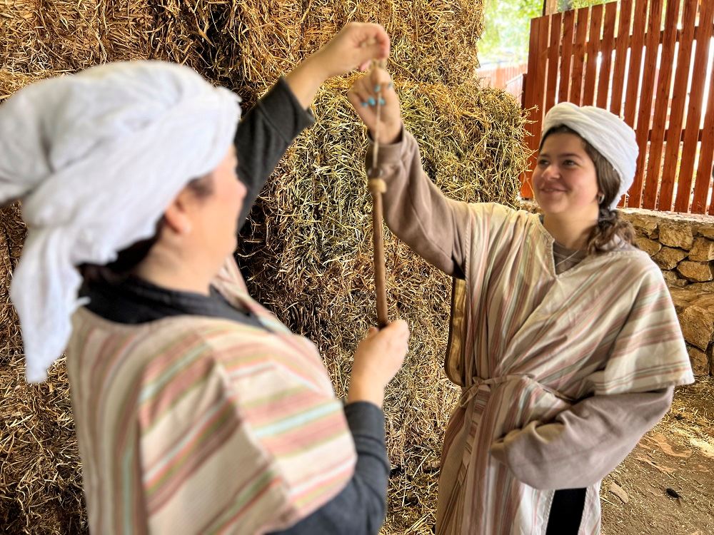 Notre activité de Filage de la Laine Biblique vous invite à essayer des outils traditionnels, à sentir la texture de la laine brute et à vous connecter à l'artisanat silencieux qui habillait des générations aux temps bibliques.